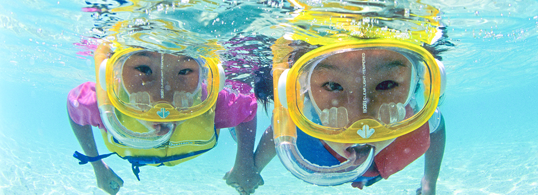 初めての方でもマスクの着け方からシュノーケルでの呼吸の仕方、フィンの使い方を分かりやすくご説明します。シュノーケリング講習は足が立つところで行うので未経験者や泳ぎが苦手な方、子供や高齢者でも安心して受けれます。そして講習後は、お待ちかねのシュノーケリングタイム。